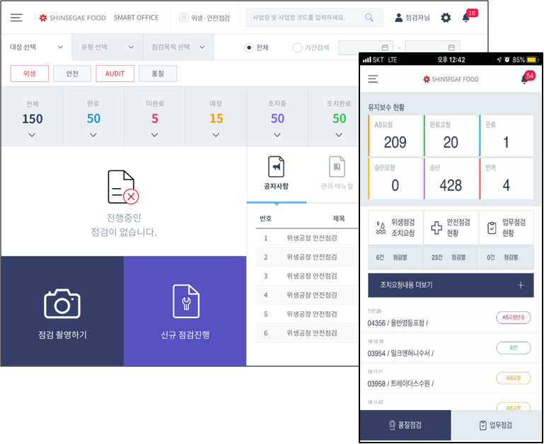 신세계 푸드의 위생 관리 및 생산 공장의 점검 관리를 위한 통합 관리 시스템 개발 사업